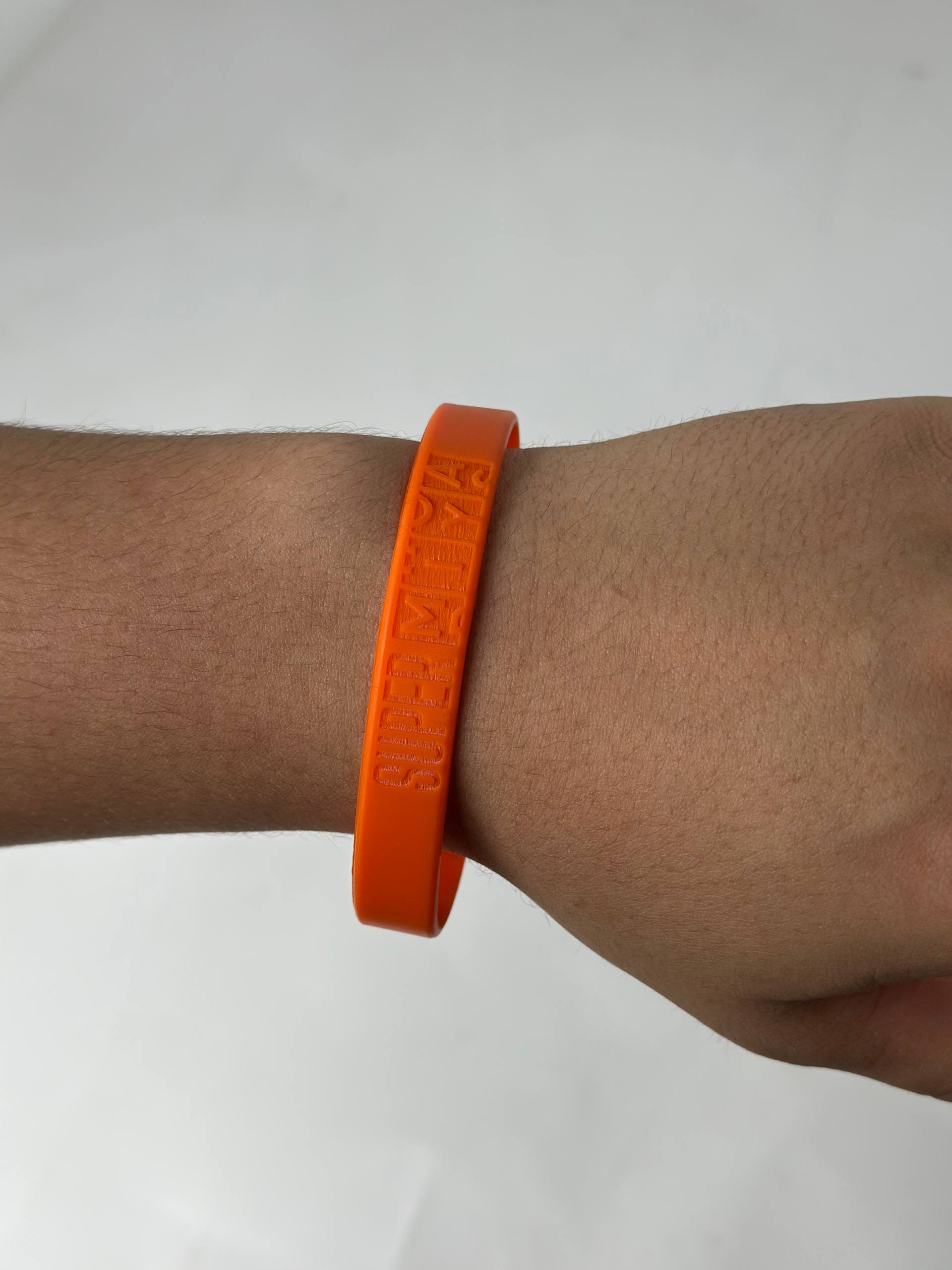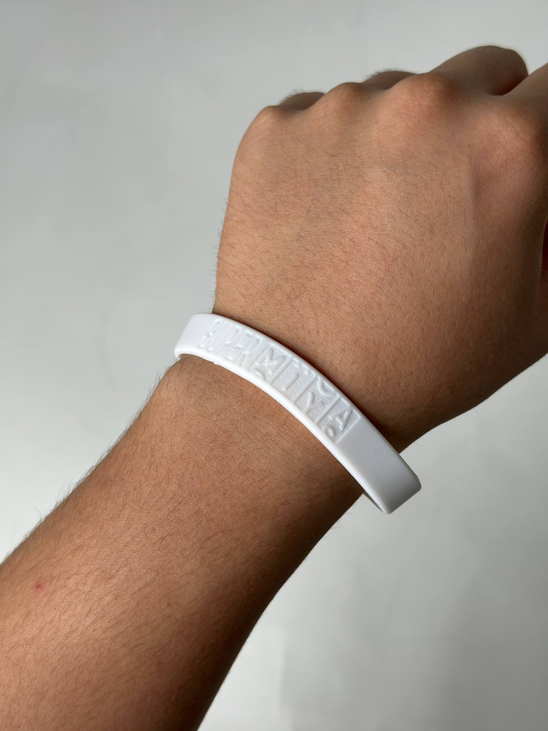 O‘lchami 100x12 mm, materiali esa cho‘ziluvchan silikon. Bunda nafaqat qulaylik, balki chidamlilik ham mujassam. Bilaguzukka gravirovka (kuydirish) texnologiyasi orqali yozuv yoki logotip tushiriladi — bu usul yozuvning o‘chmas va sifatli bo‘lishini ta’minlaydi.